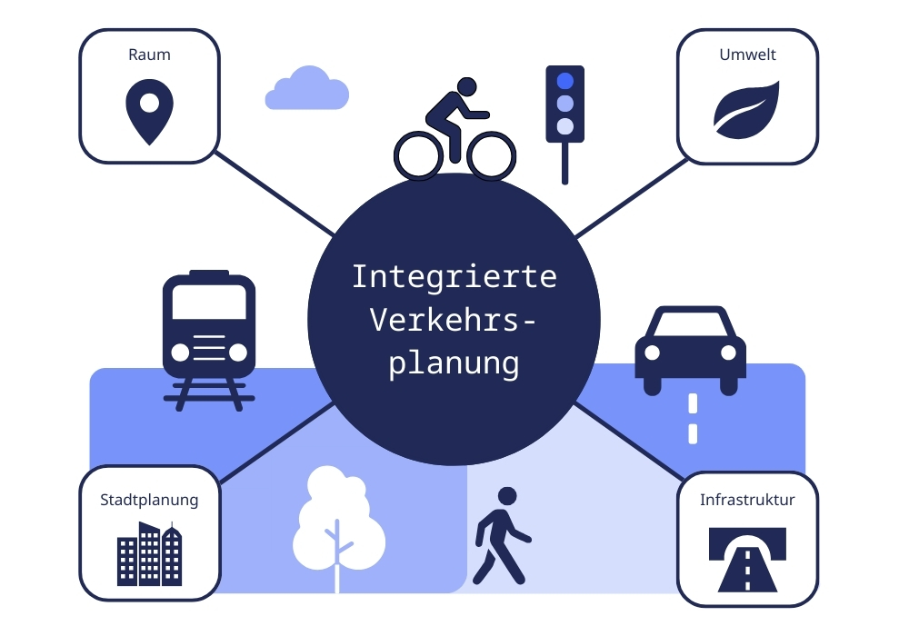 Ein moderner Planungsrahmen zeichnet sich durch integrierte Verkehrsplanung aus: Er verbindet verkehrliche Konzepte mit Stadtentwicklung, Umwelt- und Klimapolitik. Nur wenn alle Fachplanungen, vom Flächennutzungsplan bis zum Mobilitätskonzept, auf gemeinsame Ziele ausgerichtet sind, entsteht ein konsistentes und nachhaltiges Mobilitätssystem.